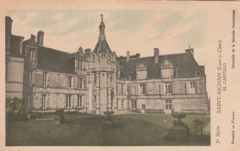 | Saint-Aignan (Loir-y-Cher). El Castillo. El Castillo de Saint-Aignan (Loir-y-Cher). El castillo de Saint-Aignan dista unos 50 kms de Blois y está situado a la orilla izquierda del Cher. Construido en el siglo XVI por la familia de Beauvilliers, sobre las ruinas de una fortaleza edificada en el siglo XIII que habla pertenecido a los Condes de Blois, fue construido en el más puro estilo Renacimiento: se compone tan solo de dos grandes cuerpos de edificio perpendiculares entre si, circundando el gran patio de honor. De proporciones elegantes y con magníficos detalles arquitectónicos, esta hermosa residencia ha sufrido pocas modificaciones desde el siglo XVI; y con sus elevadas techumbres de pizarra, sus ventanas con remates muy historiados y su magnífica torre poligonal, la vemos hoy casi tal como la construyeron los Beauvilliers: el único edificio posterior a la edificación del castillo, es un pabellón construido en 1870 por el arquitecto Sirodeau. La propiedad de Saint-Aignan se compone de un hermoso parque y de inmensas terrazas que dominan el vall del Cher. |